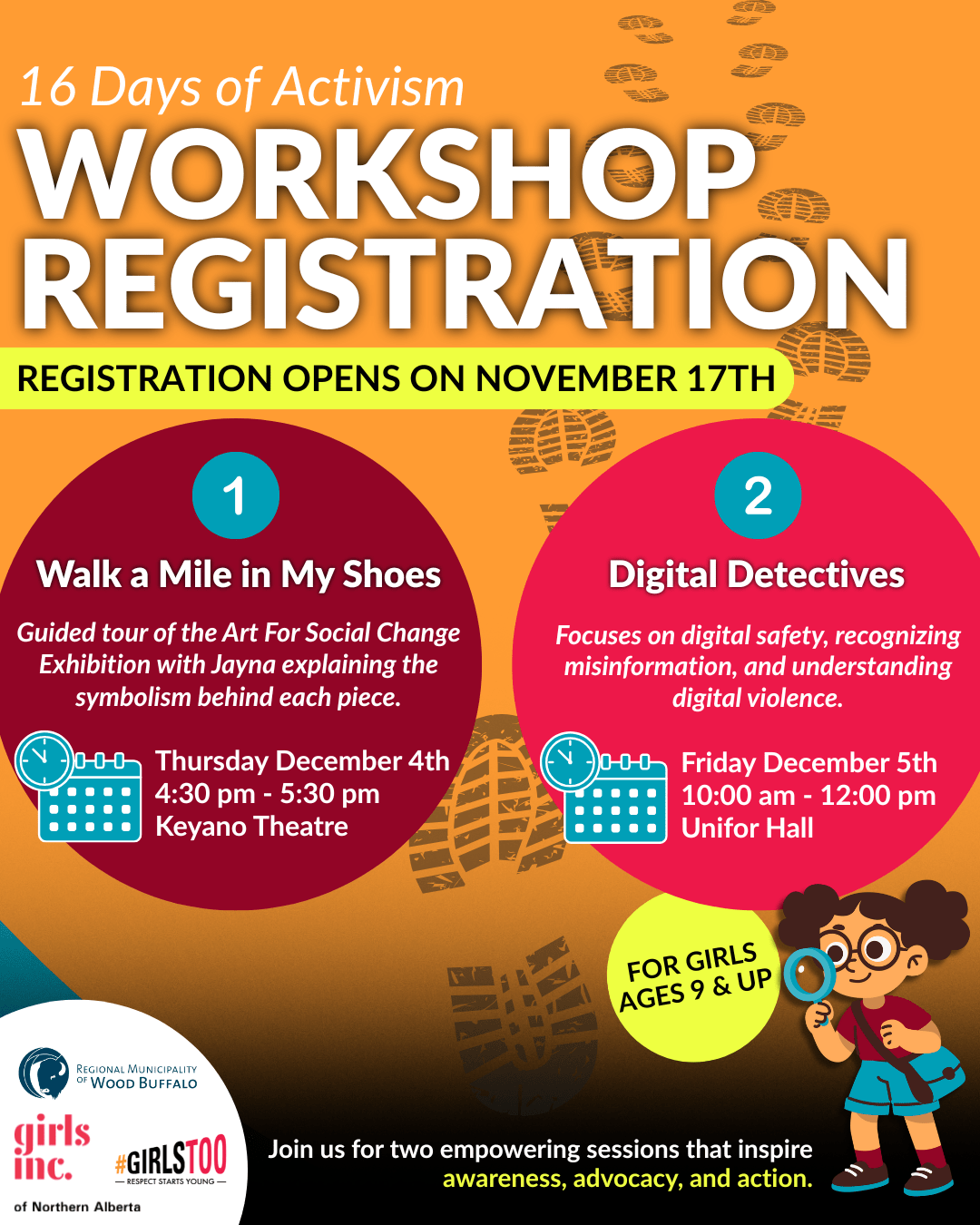 As part of our 16 Days of Activism Against Gender-Based Violence campaign, we are offering two empowering workshops that help youth build awareness, safety skills, and advocacy tools.